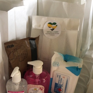 Tryall Fund volunteers organized on site at Tryall by Tryall Fund Board members Alice Needle and Nancy Pinchas filled 1,000 carry away bags with hand sanitizer, packs of masks, forehead thermometer strips, liquid soap, face/hand cloths, and disinfecting wipes. These were distributed to all Tryall Villa and Club staff prior to Election Day, Sept. 3. Additional bags will go to the children in the seven Basic Schools of the Fund’s “Success by Six” program [ages 3,4,and 5] in Hanover Parish. The remainder of the bags will be given to the Sandy Bay Evening Clinic, open two nights a week under the auspices of the Fund . The appreciation and thank yous were immediate.........